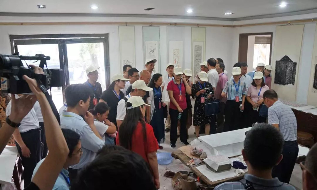 在讲解员的详细介绍下,采风组成员先后参观了百狮园、多功能展厅、非遗传习所、农耕(民俗)文化馆等展厅。 多功能展厅:先后举办周口与内蒙古乌兰察布、江西上饶、陕西榆林、湖北宜昌等省内外两地及个人文化艺术交流活动40多场。同时长期展示明清大型农耕物件木榨机和汉代迎宾图、太祖高皇帝圣旨碑‘治国六谕’、八神捧寿青龙白虎如意吉祥图、福禄寿等古代石刻壁画共60余件。 非遗传习所(拓制技艺):弘扬和传承中华1000多年的拓片制作技术工艺,每年节假日都有大量的中小学生前来体验拓片制作,感受深厚的中国传统文化。 农耕(民俗)文化馆:展示有裴李岗文化石磨盘、石磨棒、石斧、石犁、步犁、耙、耧、机械水车、锄、镰、太平车、宏车子、大尖杈、石磙、风车等历史农耕文化物件2000余件/套。 华威艺术馆:一楼珍贵墓志铭展区,展示有珍藏晋故中书侍郎颖川颖阴荀君墓志铭、大明崇恭王妃王氏圹记、大明崇昭王次妃李氏墓志铭、清封恭人樊母郭太恭人墓志铭等99方;二楼吉祥文化展区,展示有收藏的“鸡”文物20多件和全国26家博物馆的鸡文物图片;三楼两汉文化展区,展示有反映两汉时期的政治、经济、文化及市井等社会风情的汉画像砖300余块。